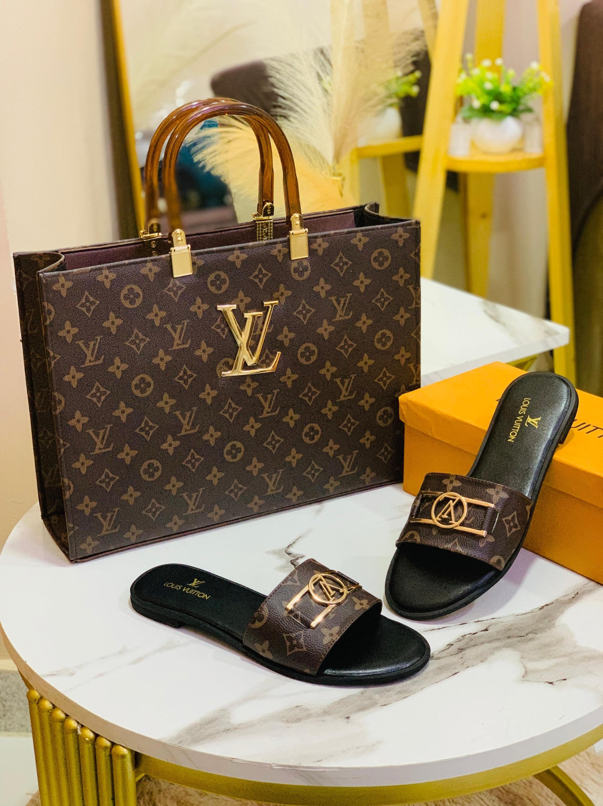 Upgrade your style with this elegant Handbag & Slides Combo Set β¨. Designed with premium texture, golden accents, and a modern finish, this set is perfect for daily wear, parties, and special outings.